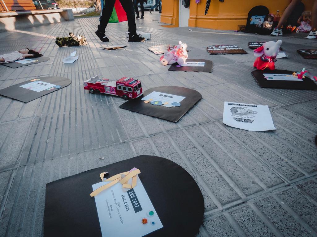 “Quisimos conmemorar a los niños del Sename en el día de hoy, porque es el día de los Derechos Humanos. Como se puede ver en algunas consignas, hay más de 1.313 niños que han muerto en el Sename. La idea es generar cambios y conciencia en la gente para que esto no siga ocurriendo”, manifestó Giannina González, una de las organizadoras de la intervención.