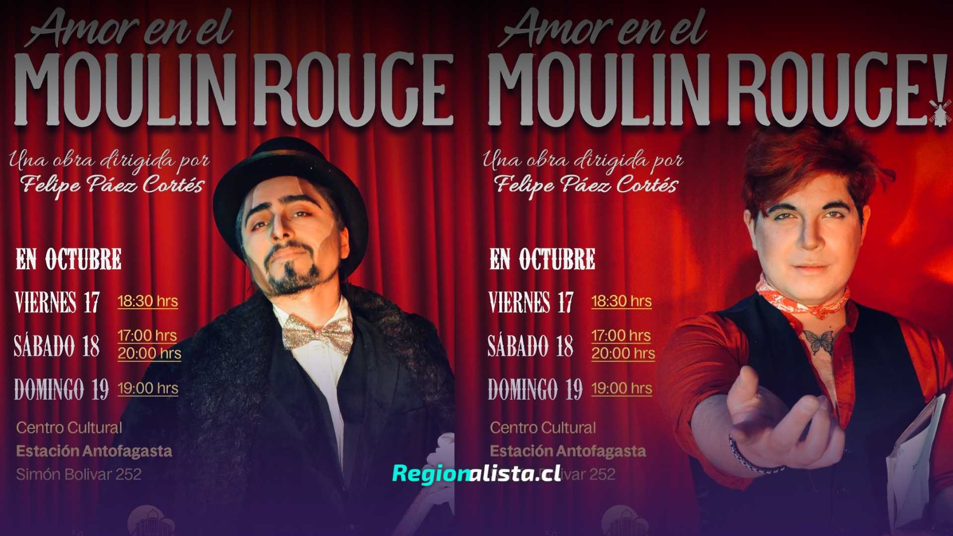 El Centro Cultural Estación Antofagasta es el escenario de “Amor en el Moulin Rouge”, una puesta en escena dirigida por Felipe Páez Cortéz y protagonizada por Ángel Rojo Ramírez, Sofía Araya Sepúlveda, Elizabeth Astudillo Olmedo y Diego Alegre Barraza.
